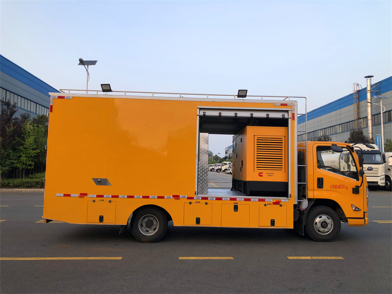 上裝配置:定制復(fù)合箱體,帶降噪功能,不銹鋼內(nèi)飾,75WK柴油發(fā)動(dòng)機(jī),雙風(fēng)機(jī)組合,定制控制系統(tǒng),160米繞線機(jī),紫外光大小燈鏈各一組,箱體帶冷暖空調(diào),氣動(dòng)遮陽(yáng)板,不銹鋼儲(chǔ)物柜,兩側(cè)帶工具箱,更多配置